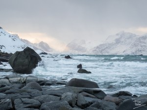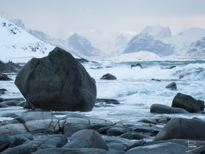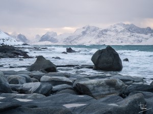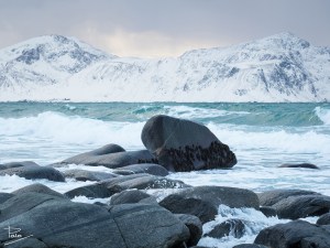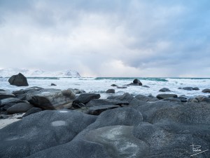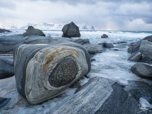 Som nämnts i tidigare inlägg så var besöken på stränderna i Lofoten både många och ibland också långa. Vikten var nog min personliga favorit, och anledningen till det är att där förutom det otroligt turkosfärgade vattnet och det imponerande fjället i bakgrunden fanns många och stora stenar resp stenblock. Stenar har jag alltid tyckt om även innan jag började fotografera och har i många år samlat på mig dem från de ställen jag besökt som souvenir.