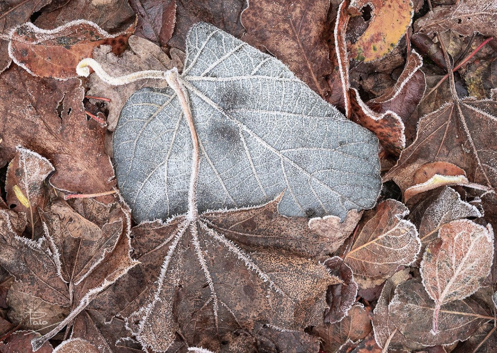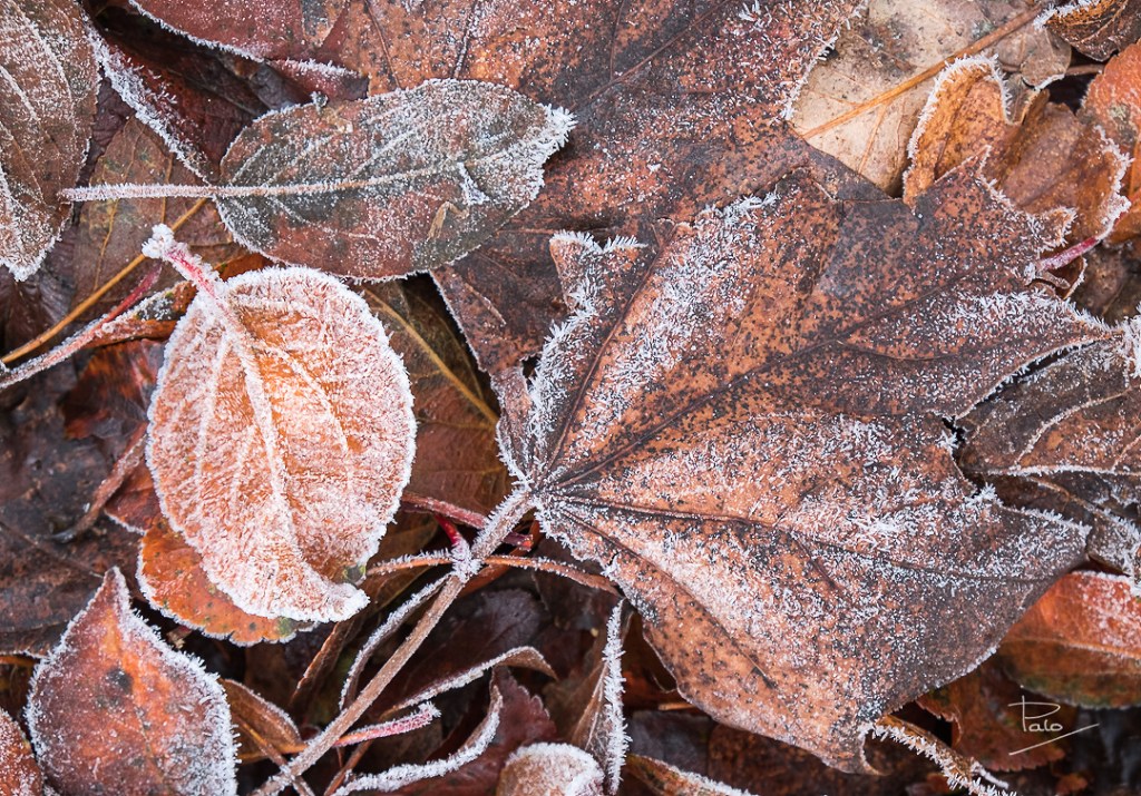 Jag kliver ut på entrétrappan, låser dörren och går tio steg. Sedan tvärstopp. Oooops så mycket löv det ligger här och skräpar, dom borde jag nog ta och blåsa bort. Tar en närmare titt och… Oooops så granna löven är, dom borde jag nog ta en bild av!
