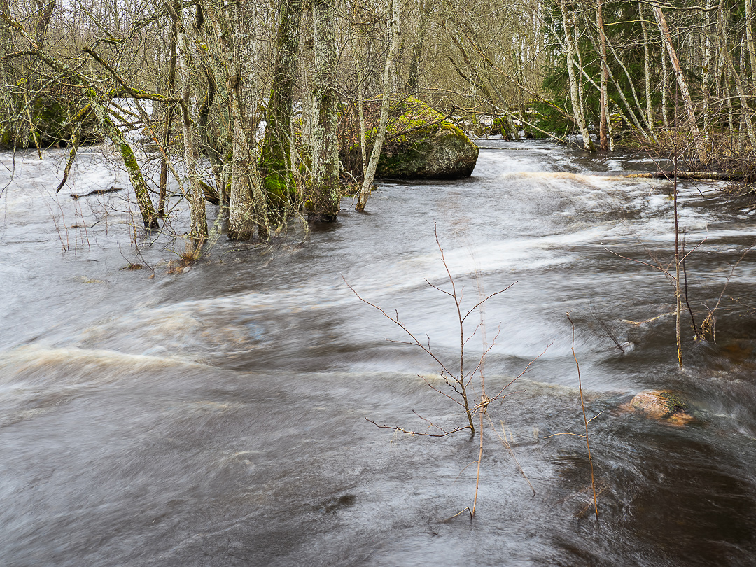 Vatten har varit helgens fototema, och trots rejäl blåst och regn har jag varit ute. Dock blev det inget besök på kusten som det var planerat, men vi har ju Lidan runt om oss som nu forsar fram i sina gamla banor. Det är från Lidan som dagens bilder kommer, varav några mer ”konstnärliga” med lite lek med olika inställningar och kompositioner bara för skojs skull. Ha´nu en go vecka därute!