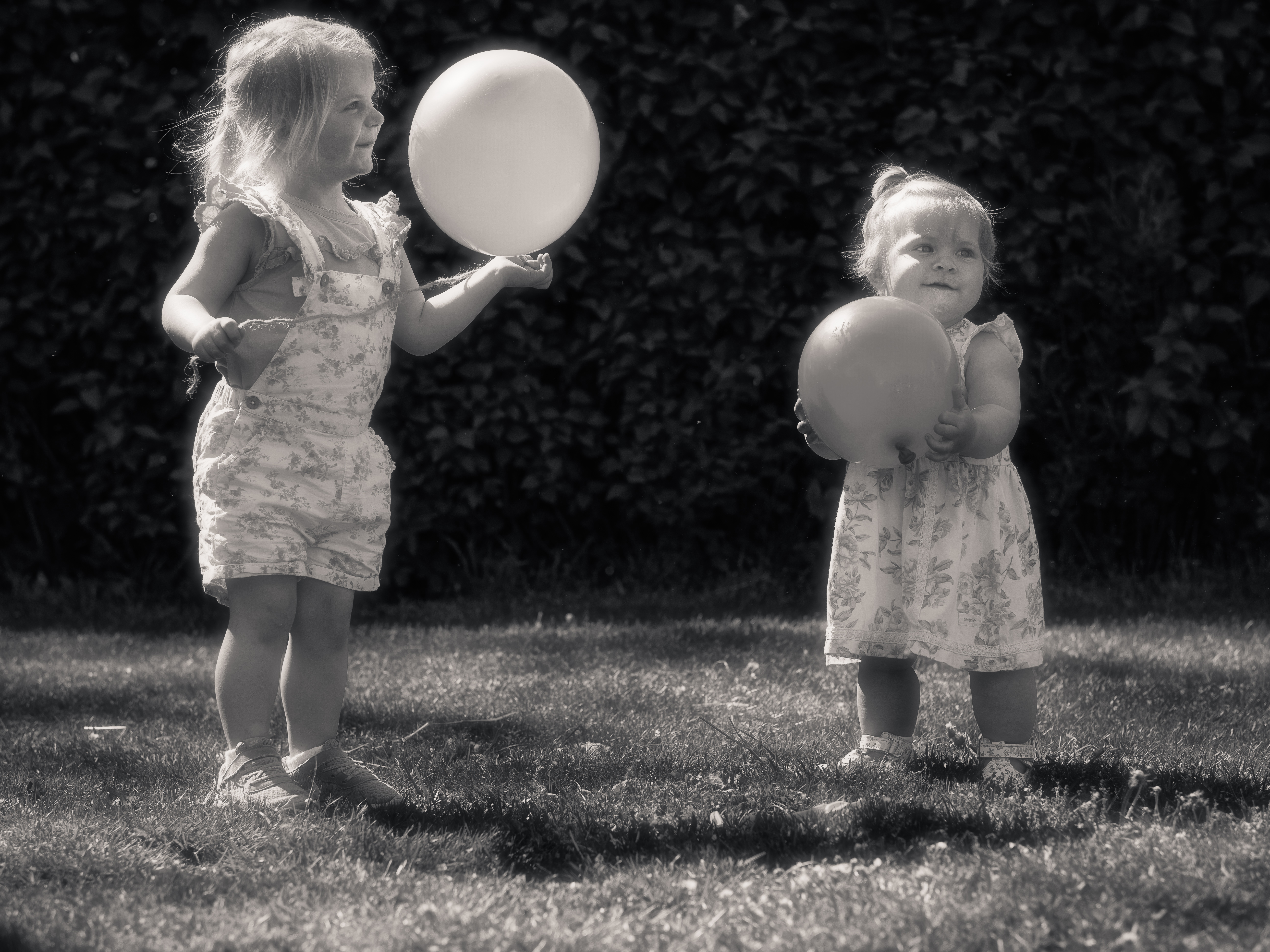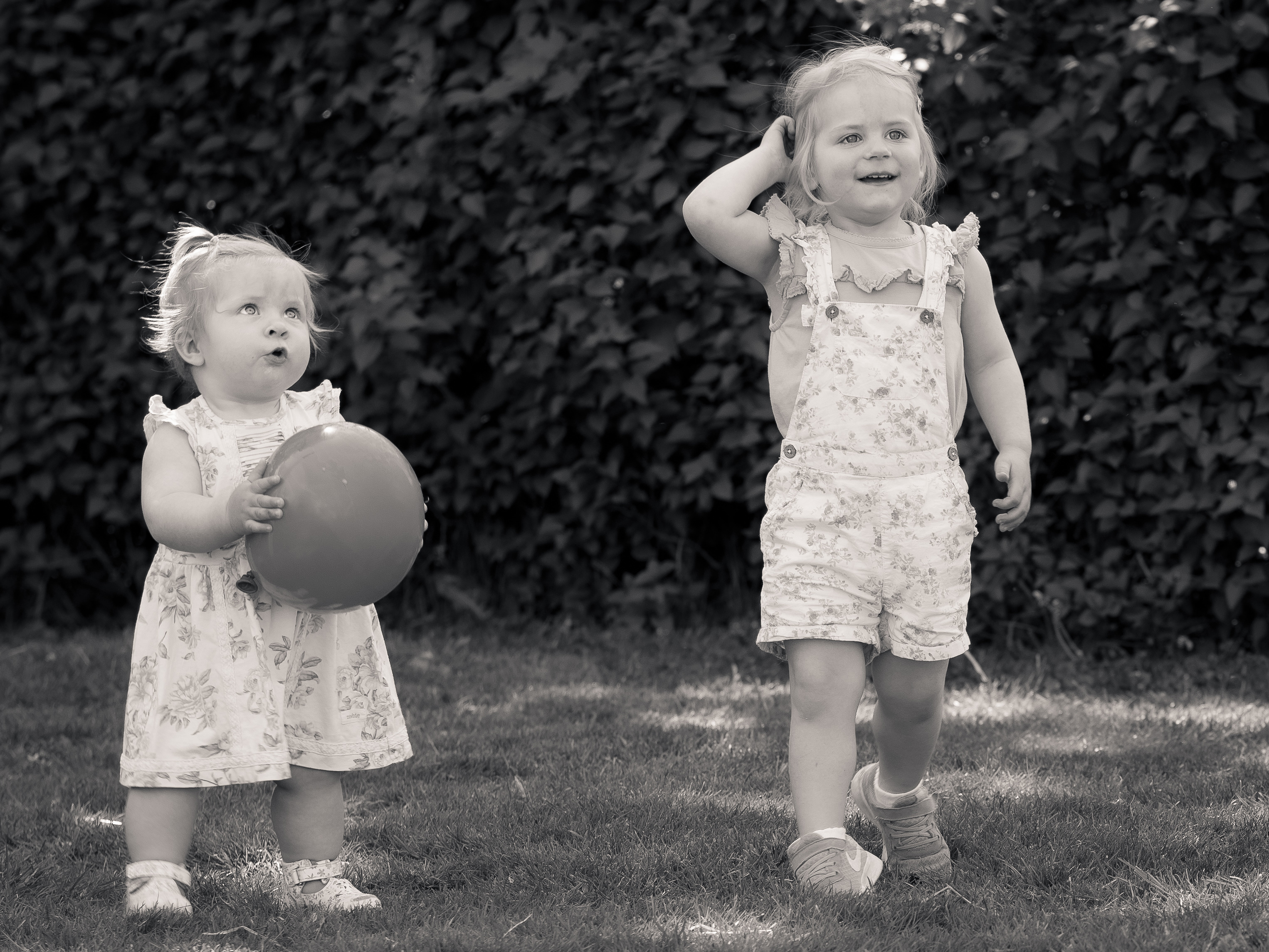 Två sötnötar i hemmamarkerna som jag fick lov att ”låna” för att få träna på att fota barn. Lärde mig bums att det var betydligt enklare att fota en ett-åring än en tre-åring :) Träningen gjordes med anledning av att jag lovat att utföra ett uppdrag i det glada Göteborg med barn. Vi hade tur med humöret som var på topp mest hela tiden. Lii och Millie fick lov att vara sig själva, det sades inte ord om fotografering, mamma och pappa bara lekte med dom med några ballonger vilket visade sig vara ett lyckokast. När humöret så småningom började dala var mamma duktig på att leka ”tokig” och förlänga det glada tillståndet en liten stund. Men ”enough is enough” och med den energi som släpptes lös under cirka en timma var det inte konstigt att orken till slut tröt. Nu får vi hoppas det går hyfsat bra även i Göteborg nästa gång. Några bilder från ”tillställningen”… Publicerat med tillåtelse av föräldrarna.