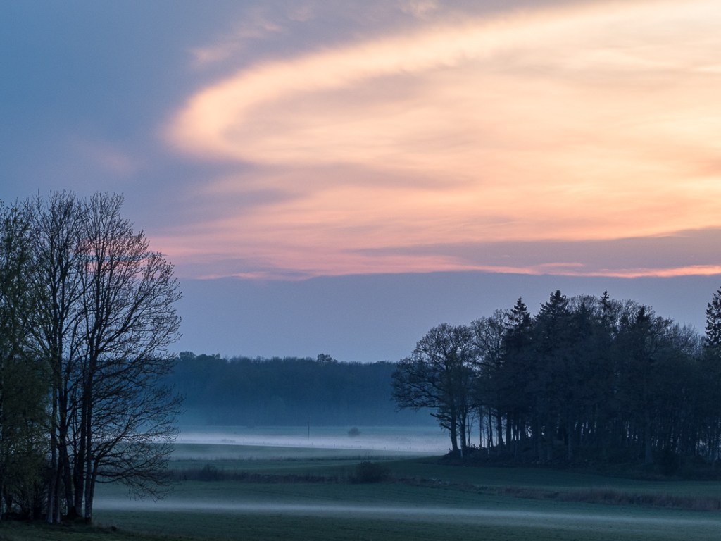 Alla ni som fotar ni vet vad jag menar…Jag pratar om den stund som var i veckan när den ljusa och varma kvällen blev bedagad med ett ljus och en dimma av sällan skådat slag. Dimman smög sig på medan jag och Flinga satt på altan och njöt av den sköna temperaturen, och så småningom blev allt täckt av ett orange/rosa omslag. Det var magi! Förmodligen var det åskvädret och dess kraftiga regn skurar som hade skapat de rätta förutsättningarna för att åstadkomma fenomenet, antar det blev mycket fukt i marken. Jag var inte ensam ute med kameran i Bästa Bitterna, mötte folk laddade med proffskamera och /eller mobilkamera i försöken med att föreviga det magiska ljuset. Tyvärr hade jag inte tillgång till bil när det hela utspelades, men kanske lika bra så, hemmavid duger bra många gånger.