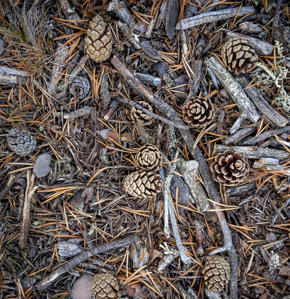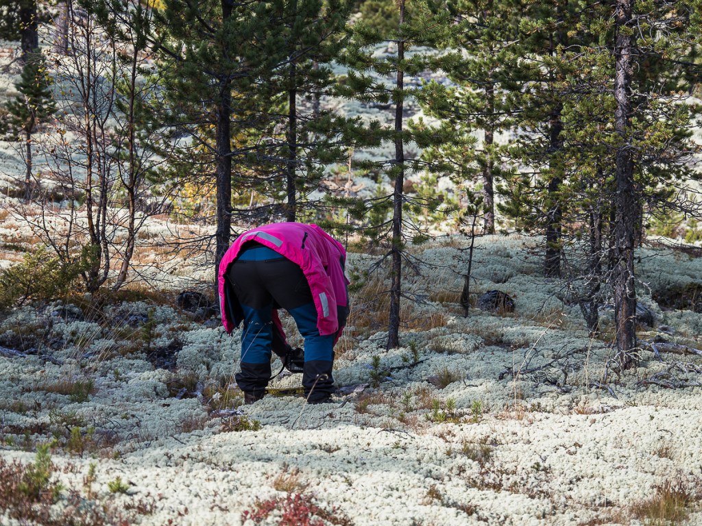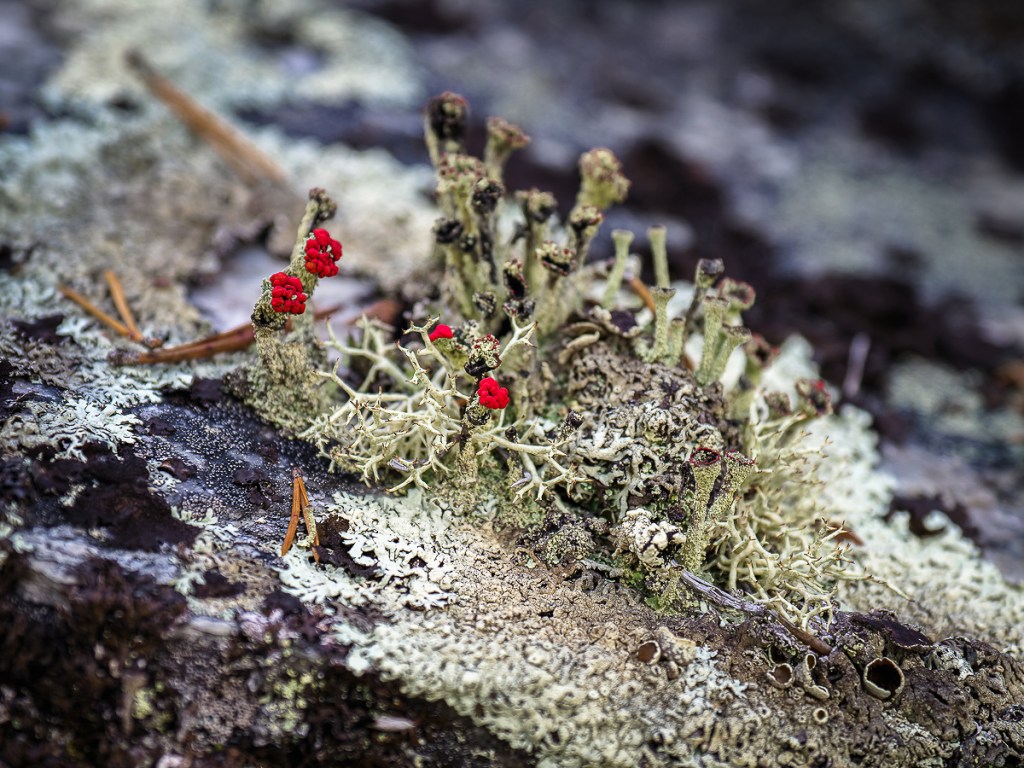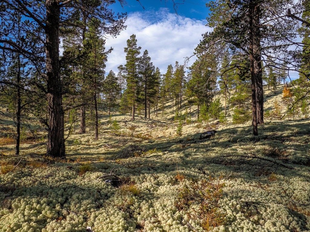 Till att börja med kom vi till en skog som var helt täckt med vit lava, och där fanns röda små uppstickare bland de gamla nästan svarta trädstammarna. Vägen blev mindre och mindre och jag var ganska övertygad om att vi skulle fastna där, för vägen liknade till slut mer ett traktorspår än väg. Det gick bra i varje fall (denna tanten börjar nog bli gammal och räddhågsen) och efter att ha kört en stund kom vi tillbaka till en annan väg vi tidigare redan varit på. Snurrigt!