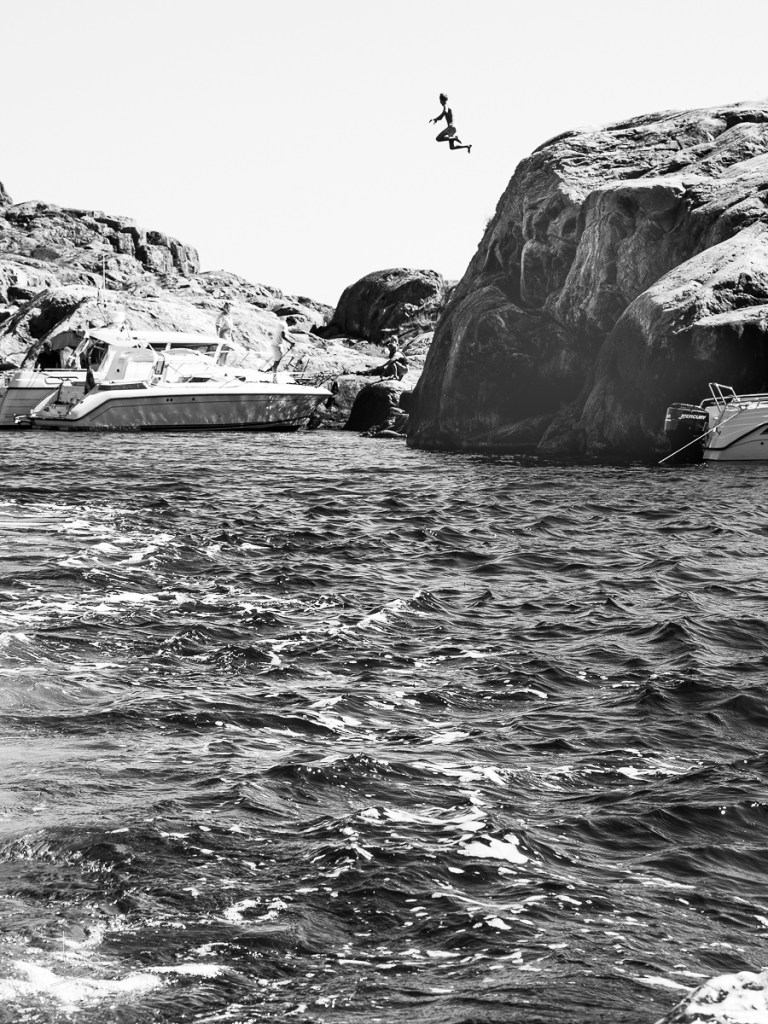 Vilken vidunderligt härlig sommardag det blev denna torsdag som spenderades på vågorna de blå i Göteborgs södra skärgård. Jag roade kameran och mig själv mest med de abstrakta mönster och speglingar som bildades vid klippkanterna, och där den väldigt blå himlen ibland gjorde inhopp. Det väldigt hårda ljuset var anledningen till de många svartvita bilderna.