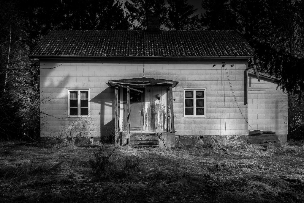 Adrenalinet stiger lite när man försiktigt kliver runt i omgivningar som detta, det känns lite förbjudet och faktum är väl att det till och med ÄR förbjudet?!? Inte riktigt säker på det eftersom jag inte går in i några hus , hade jag gjort det hade jag varit helt säker på att det är förbjudet, men att bara gå runt på utsidan, inte ens på en tomt…? Varför fotar man då på sådana här ställen kan man undra. Tja…lite grand för att historiens vingslag kan vara påtaglgt, men också för att fasader och föremål som fått stå orörda länge tilltalar mig väldigt mycket..de får en alldeles egen och vacker patina och den lockar. Idag blir det några svartvita bilder som jag tycker passar till dagens motiv. Hoppas någon kan falla i smaken!?!