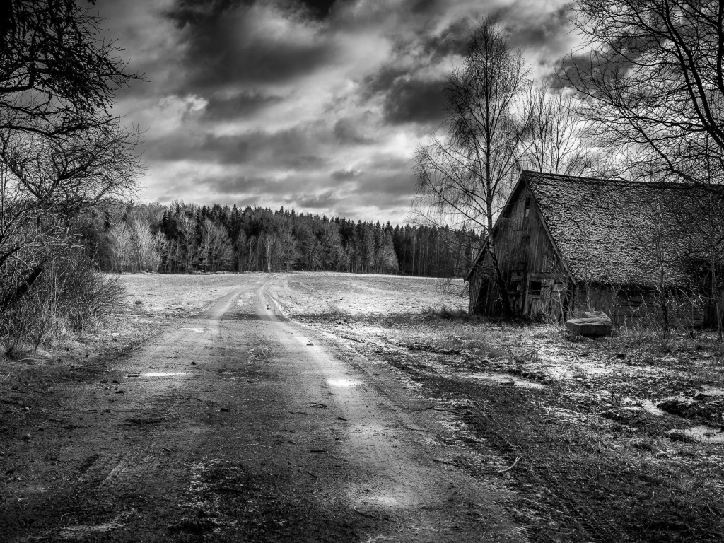 Idag tog jag bort en liten bit till en plats som jag kikat på lite så där i förbifarten. Jag har anat att det kan ha varit ett ödeställe, men trots att en god stund spenderades där idag så är jag inte hundra procent säker på att så är fallet. Där fanns för många och för färska hjulspår, men å andra sidan kan det ha varit vem som helst som gjort som jag, stannat till för att fota? Kanske Thomas Örn Karlsson himself till och med eftersom han varit på väldigt många öde ställen och fotat, och vi bor ju faktiskt i närheten av varandra.