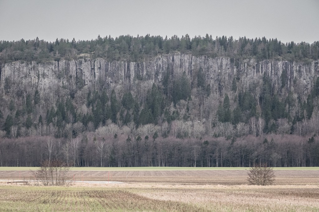 Vi hade bestämt att vi skulle åka till kusten för att fotografera snöklädda klippor och kanske lite isbildningar i havet. Den planen satte vädret stopp för när det väl var dags, snön var garanterat borta nu. I stället vände vi oss mot det mäktiga Hunneberg, en tämligen outforskad del av det västgötska landskapet. Lite vilt och lite samma samma om man åker på de ganska långa vägar som finns på toppen. Det är tvunget att parkera bilen – vilket faktiskt är lätt – och ta sig lite vid sidan av för att ”det ska bli något”.