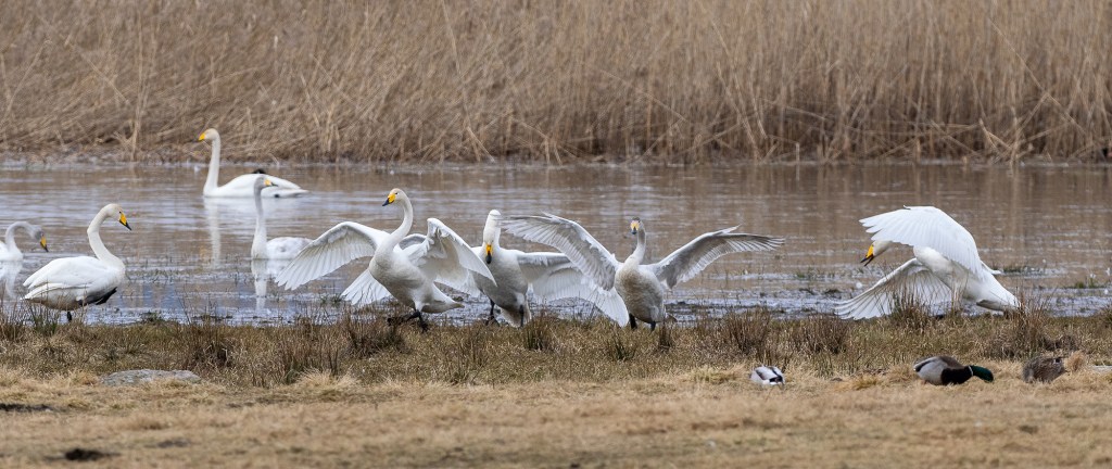 Ibland känns det som man kanske går över ån efter vatten. Vi var två tanter som bestämde oss för att åka till svansjön Tysslingen för länge sedan, och när datumet för avfärd närmade sig fick vi sällskap av en tredje tant. Alltid lika trevligt, kul och lärorikt att vara några personer på samma plats med samma sjukdom – fotografering. Man lär sig av varandra och har kul tillsammans. Sångsvanarna i Tyssligen har funnits på min to-do-lista i några år, och nu blev det äntligen av. Så här i efterhand kanske jag kan tycka att det var att gå över ån efter vatten när jag har så nära till Hornborgasjön. Nu är det inte hiskeligt långt till Tysslingen heller, men Hornborgasjön har mer att bjuda på anser jag :)