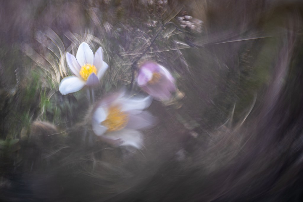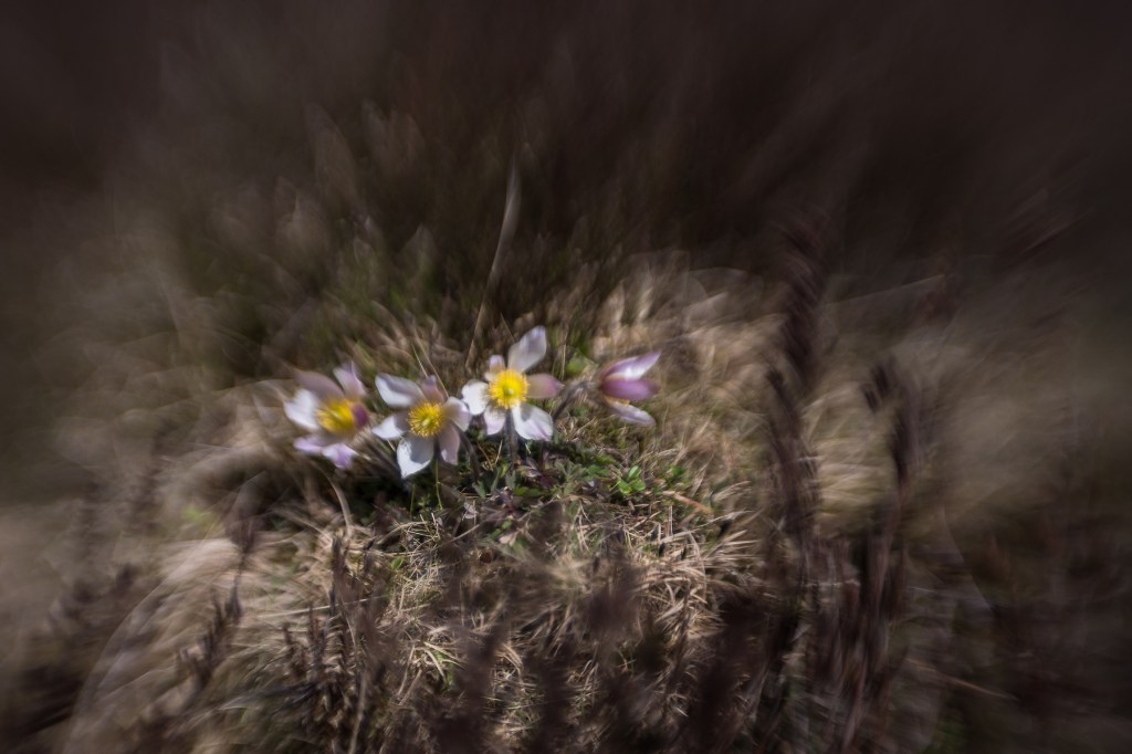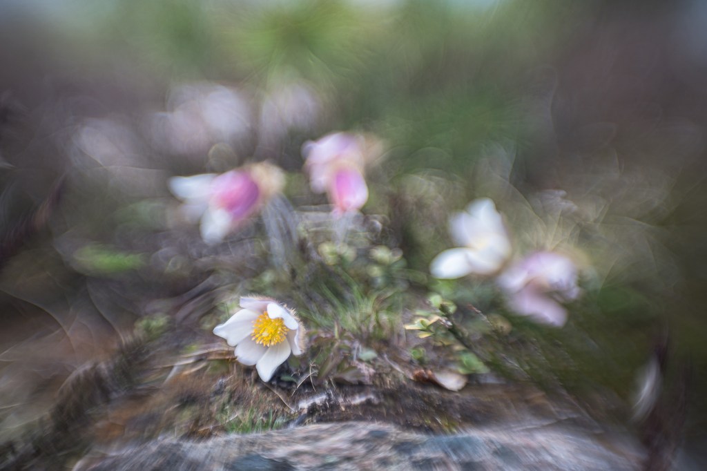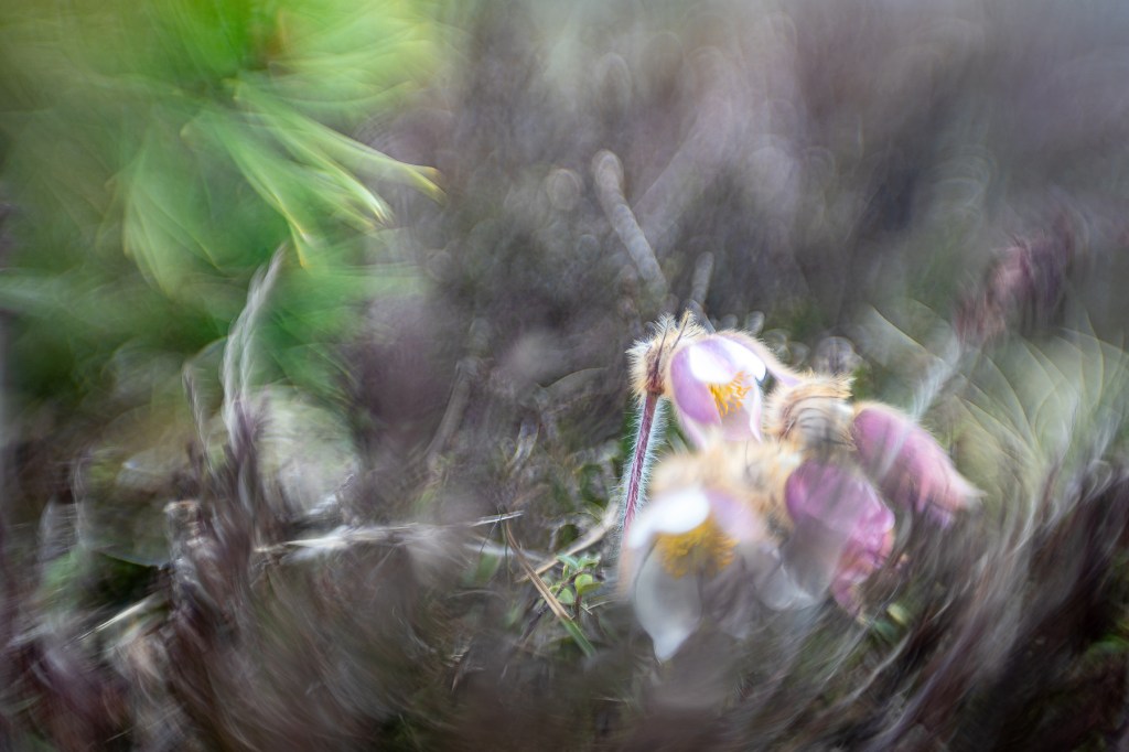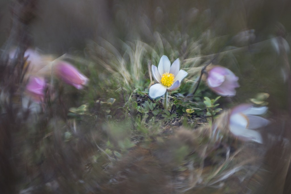 Efter okänd tid drog vi vidare till mosipporna, som jag inte trodde skulle blomma redan, men det visade sig att det var just det de gjorde. Så många mosippor har jag aldrig sett tidigare, så där fanns både olika färger och storlekar att fota. Alla som fotat makro/liknande vet ju hur mysigt det är att få krypa runt på marken och undra ”hur tusan ska jag komma upp igen” ?