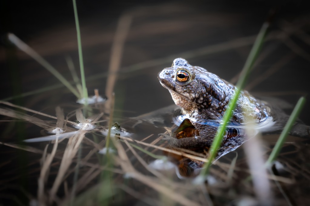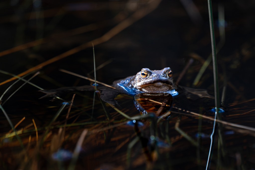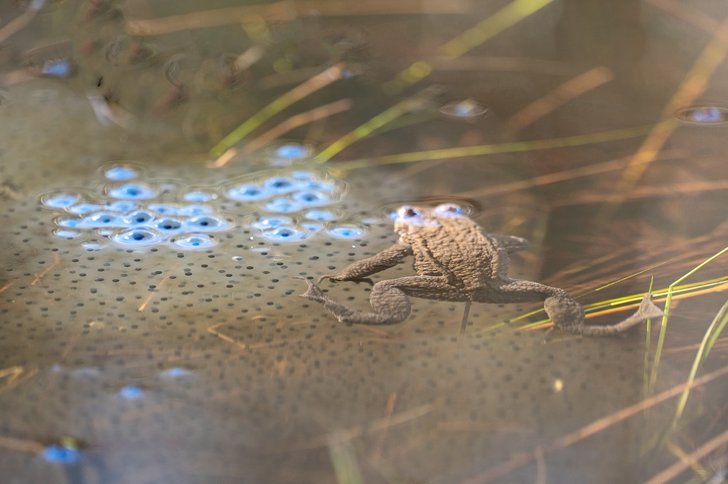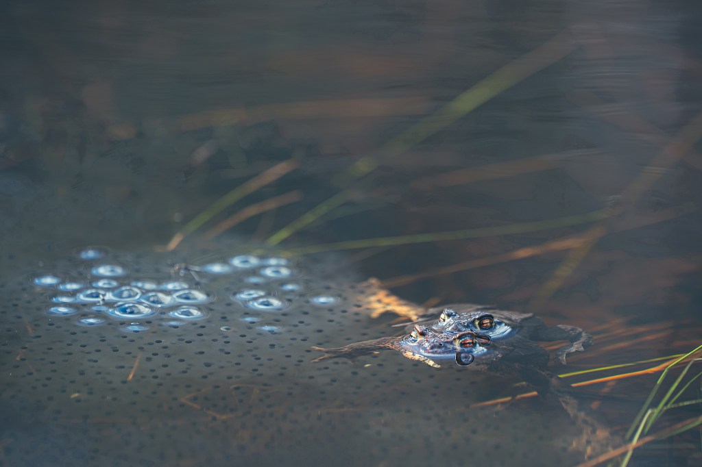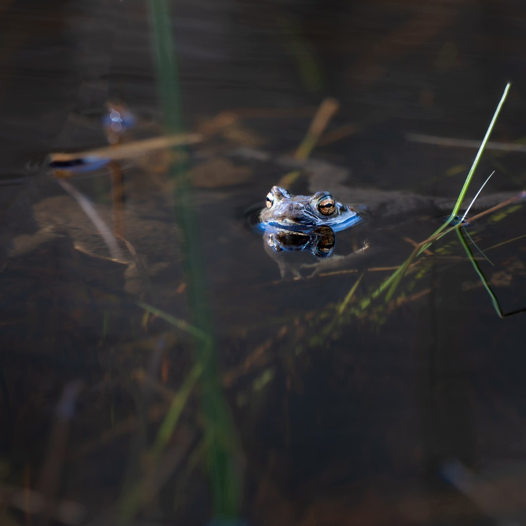 Grodor stod på schemat liksom mosippor men vi började hos grodorna. Där fick vi sitta tysta en stund så att de små rackarna vågade visa sig, eller väntade de bara på att solen skulle hitta till dem i den delen av dammen? Nåväl det spelar ingen större roll, de fanns där i varje fall, men de var inte så väldigt rörliga och höll sig mestadels under vattenytan. Grodrom fanns det väldigt gott om, det bådar väl gott för framtiden hoppas jag. Det var under tystnad och stor spänning jag väntade på att fånga min första groda till minneskortet, och solen gjorde det till en väldigt njutbar stund. Tänk att få ha naturen och dess invånare så nära sig, det är lyxigt!