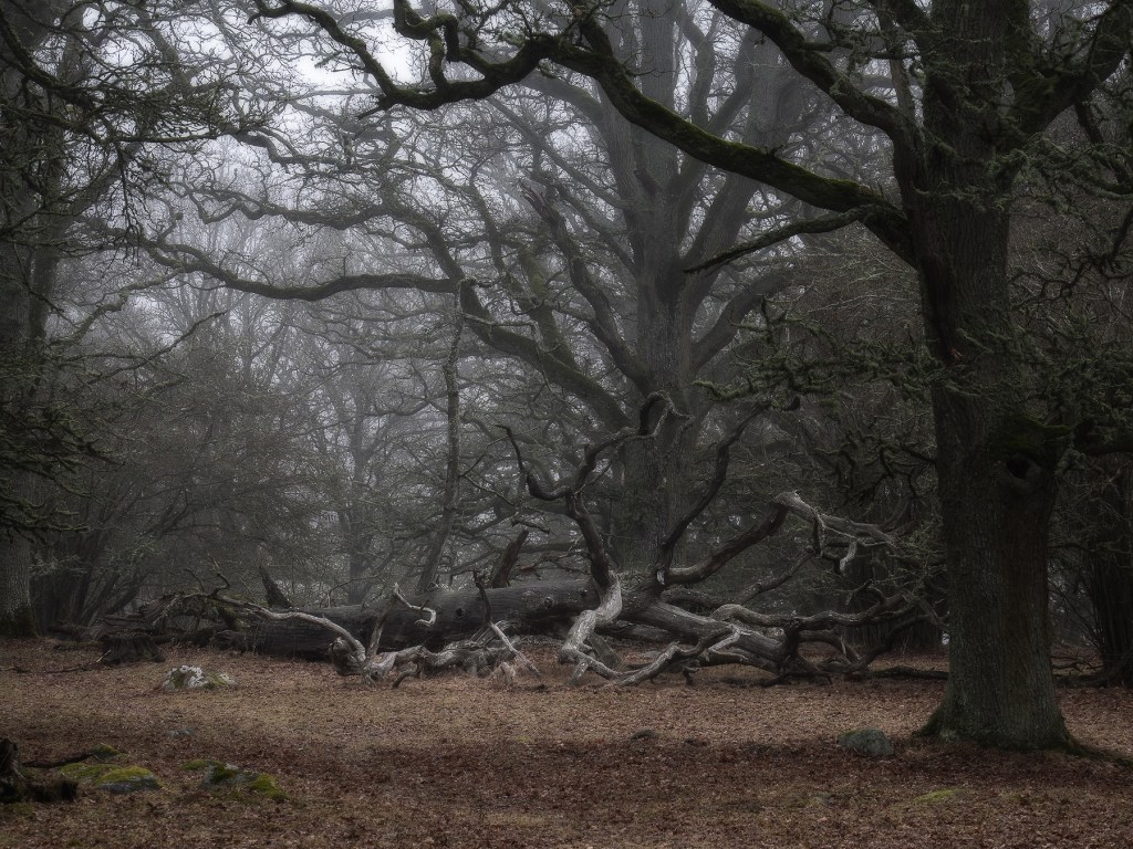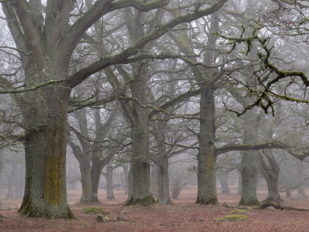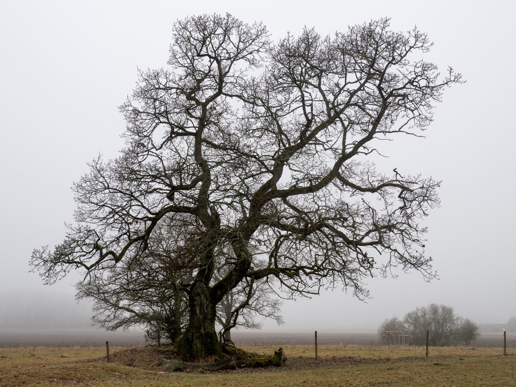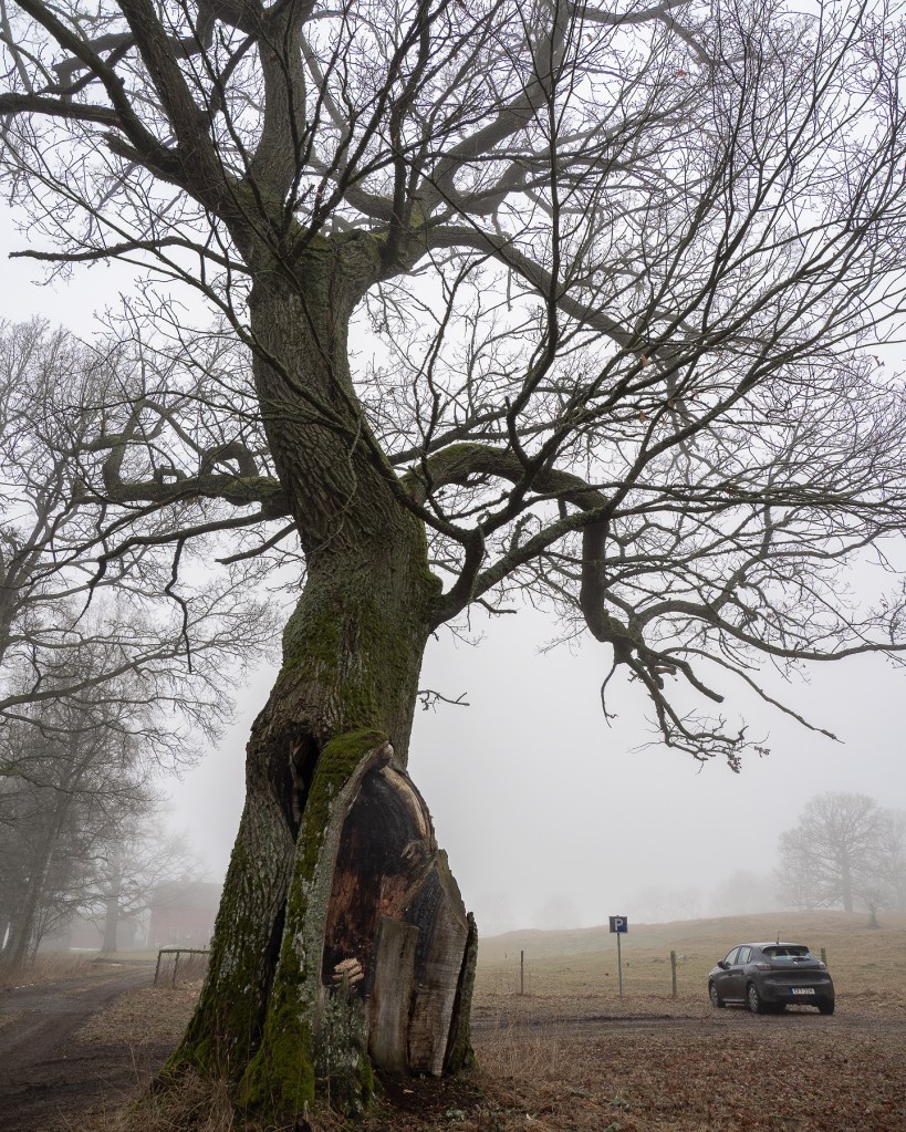 Låter inte som något vidare väder för många, men i mina och andras fotografer ögon är det just den typen av väder som triggar att med kameran ut i naturen, och för min del helst till skogen. Så idag blev det en kort biltur i omgivningarna till de stora och gamla ekarnas land. Här finns flera fallna hjältar och nya som är på gång, men ännu prydligt inramade av nät för att skyddas från betande djur. Om en månad eller så är backen här full med vitsippor. Turen avslutades med ett par bilder från Bästa Bitterna.